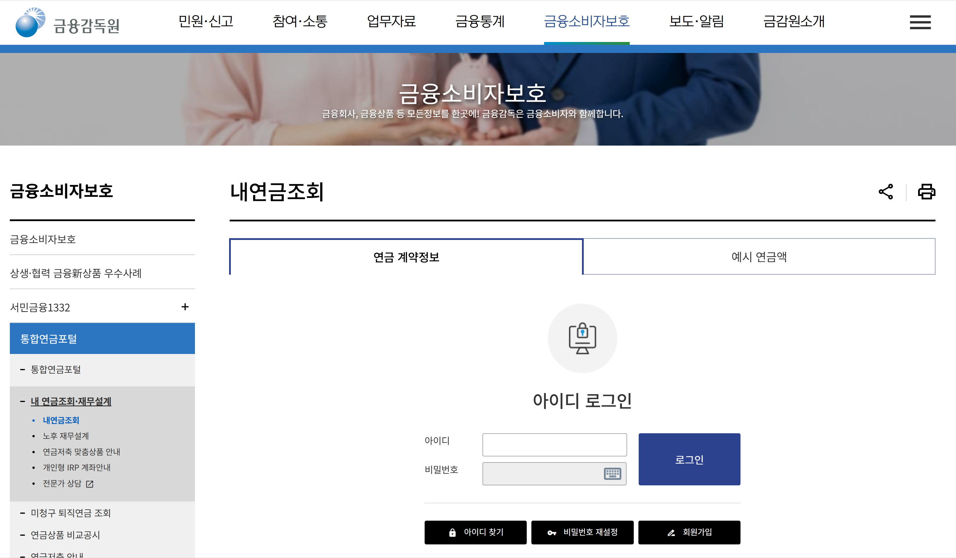 금융감독원 통합홈페이지