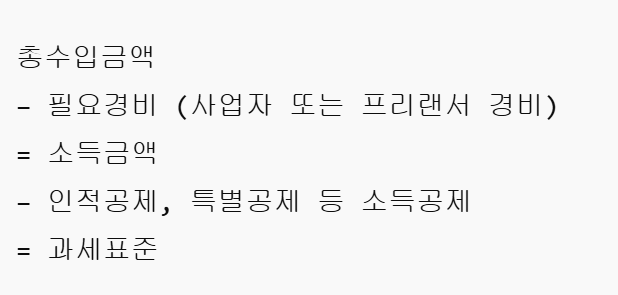 ‘과세표준’이란 말 그대로 세금을 부과할 수 있는 기준 소득입니다. 단순히 벌어들인 총수입(총급여 또는 총수입금액)이 아니라, 각종 필요경비와 소득공제·세액공제를 적용한 후 최종적으로 세금을 매기는 기준이 되는 금액입니다.